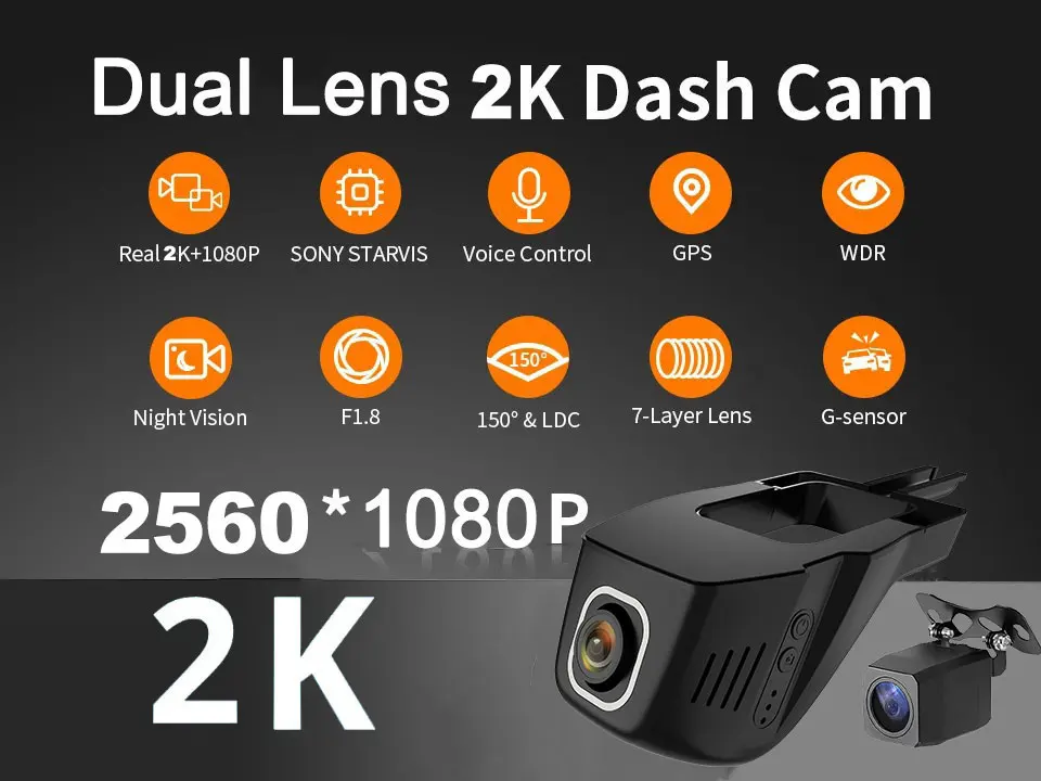 Car DVR Dash Cam Full HD 2K Dash Cam 2 Channel ADAS Car Camera 24H Parking Monitor Wifi APP Control Car Driving Video Recorder