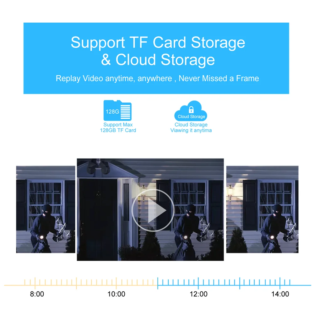 * Support cloud storage recording, support 128G TF card storage; (cloud storage needs to be paid by yourself)