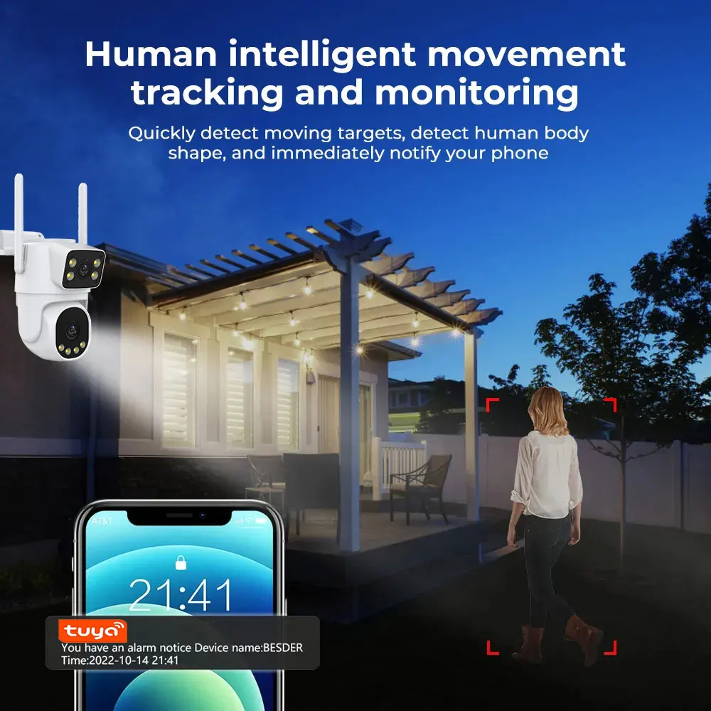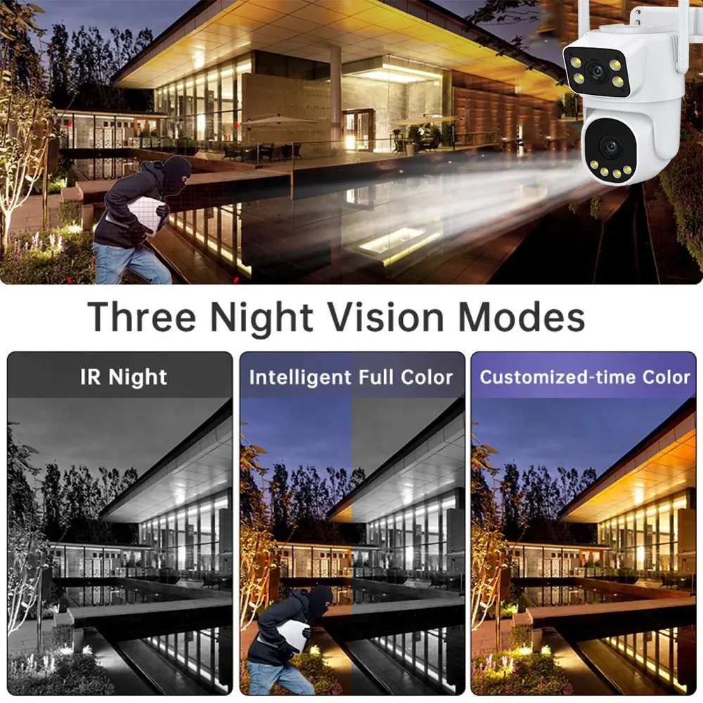 Through the combination of intelligent dual-light mode, motion detection, and automatic illumination, this surveillance camera provides an efficient and intelligent monitoring solution that can be applied to various security monitoring scenarios, ensuring your safety and peace of mind.