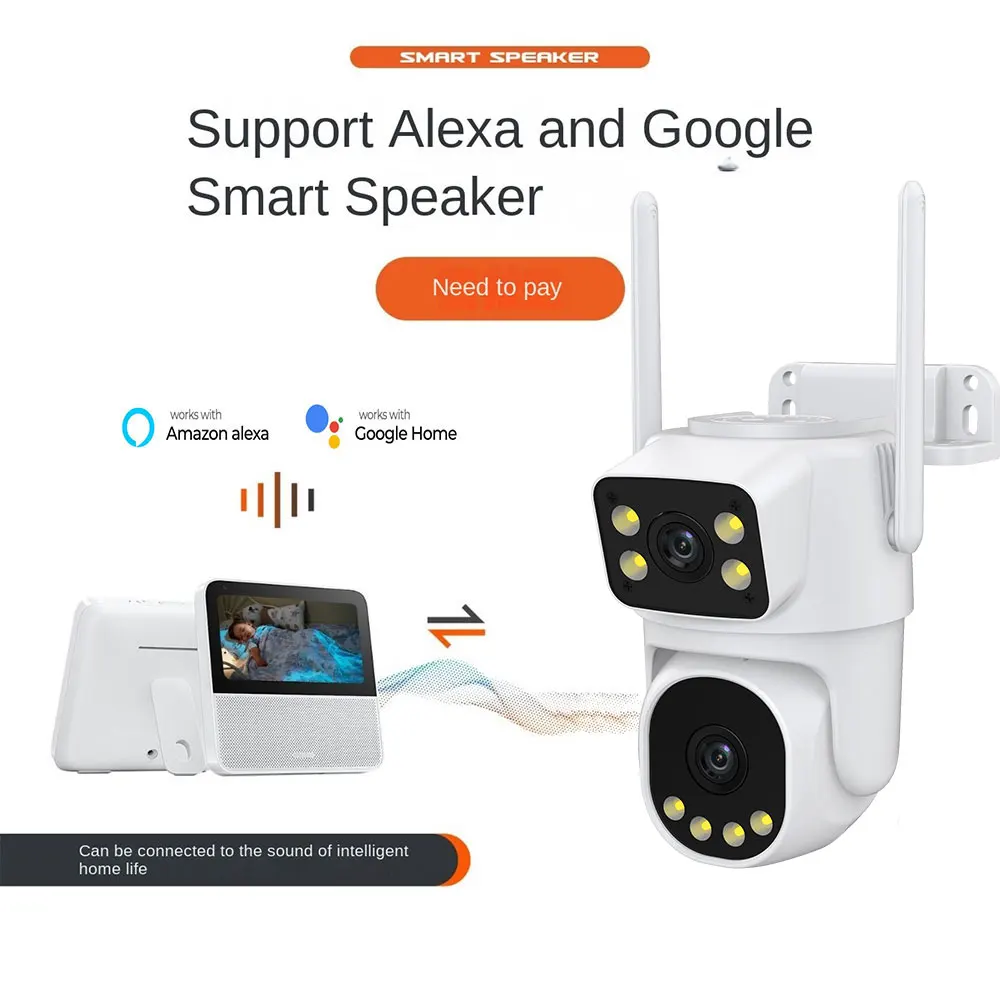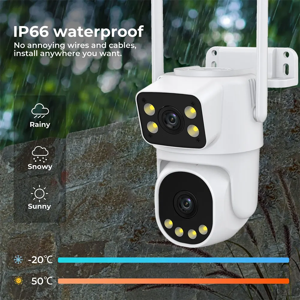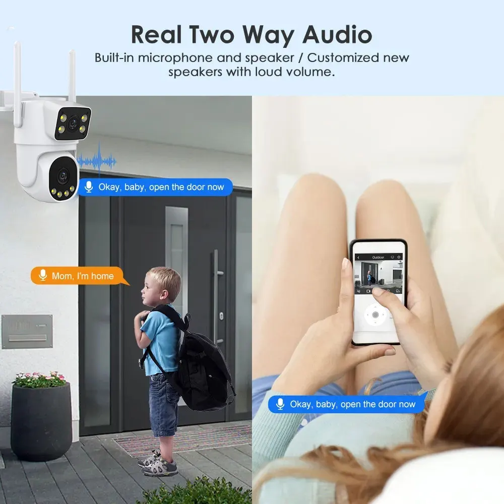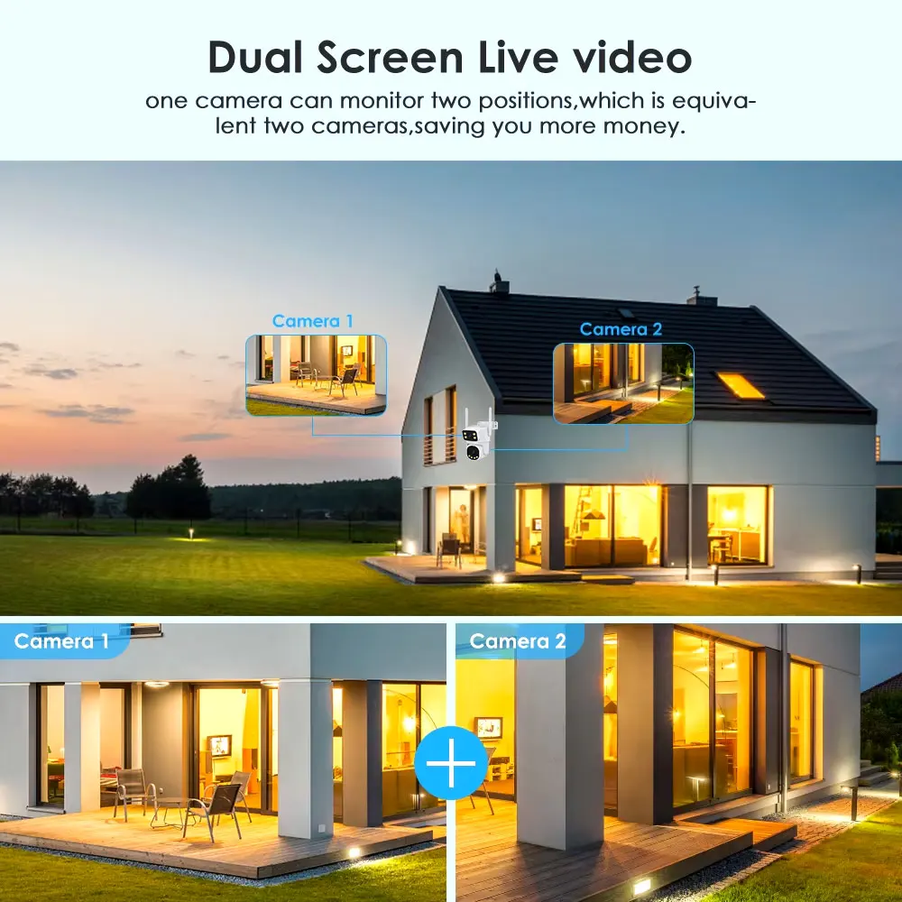 With the dual-lens and dual-screen app design, users can simultaneously view both camera feeds, making it convenient to switch between and compare different monitoring situations. This design provides users with a more convenient and comprehensive monitoring experience, allowing them to monitor different areas in real-time and make real-time adjustments and controls as needed.