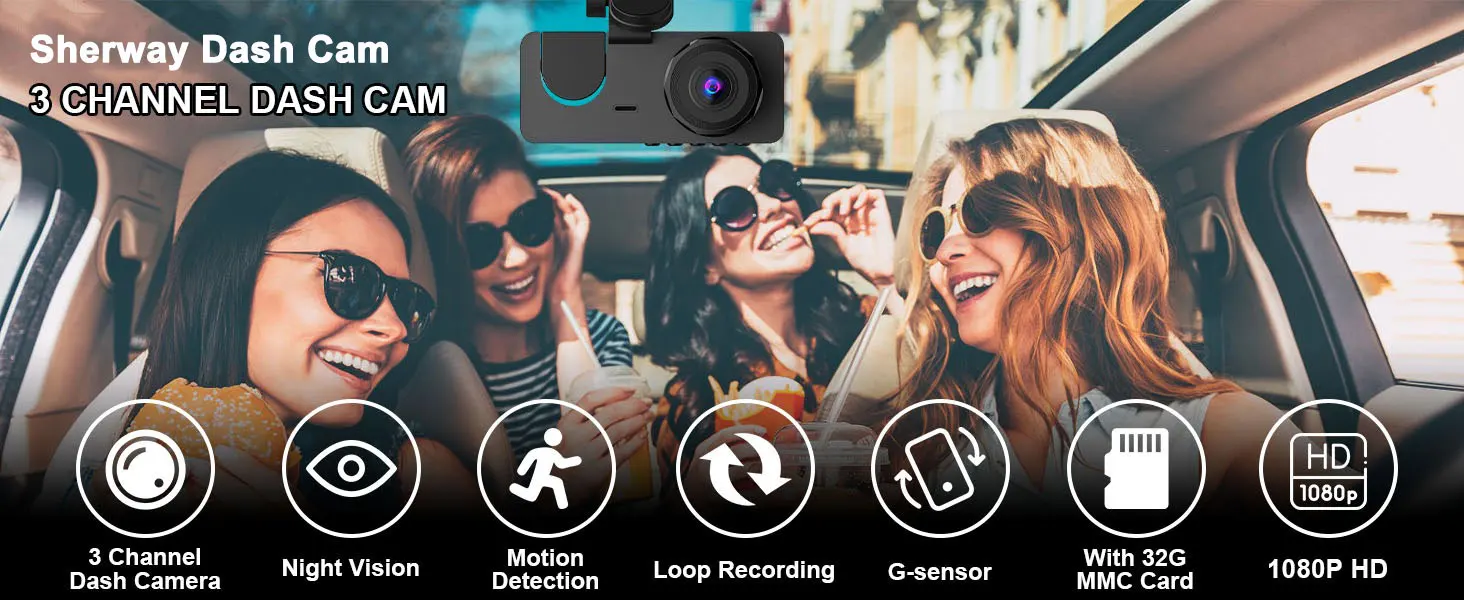 • 1080P Full UHD 3-Channel Dash Cam: 3-channel camera can record up to Full UHD 1080P video on the front and 1080P video on the back, providing 170° front camera, 120° interior camera and 150° rear camera, which can monitor the front, rear and interior of the vehicle at the same time to maximize road coverage, greatly enhance night vision, and provide clear and sharp images and videos. The dash cam is a combination of front, rear and interior cameras