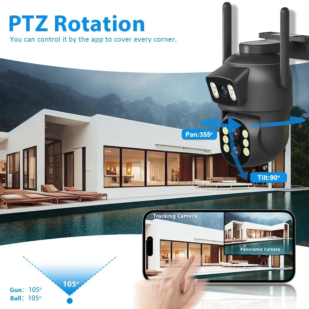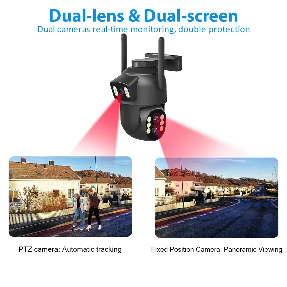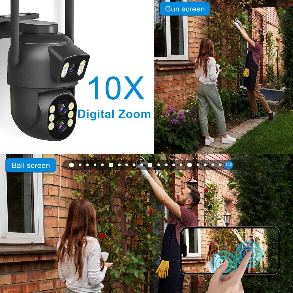 4K Dual Lens Wifi Camera Outdoor 10X Zoom Dual Screen PTZ Security Camera Auto Motion Detection Video Surveillance