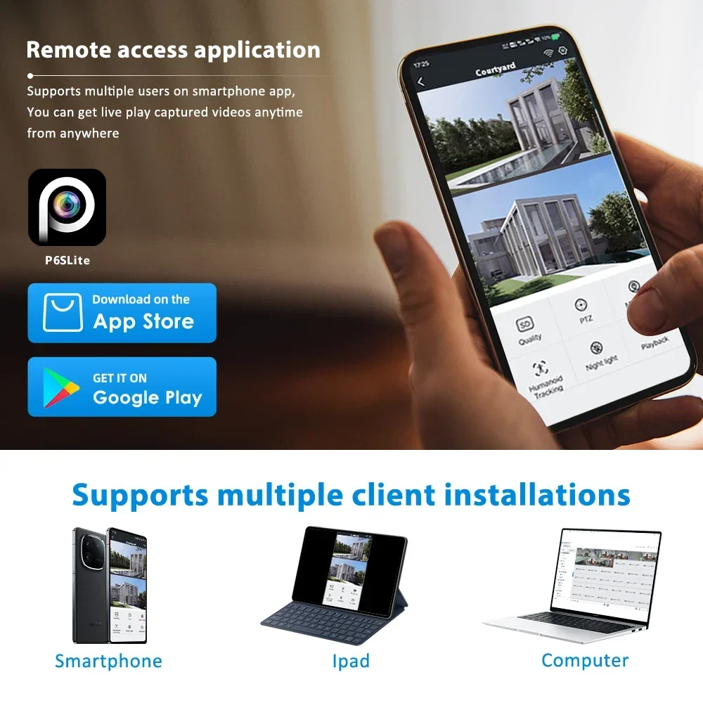 *Support mobile phones (iOS, Android), support tablets (iPad, Android), support computer (Windows), multi system compatibility. This video surveillance camera is the most convenient way to watch 1080p live streaming from anywhere, anytime.
