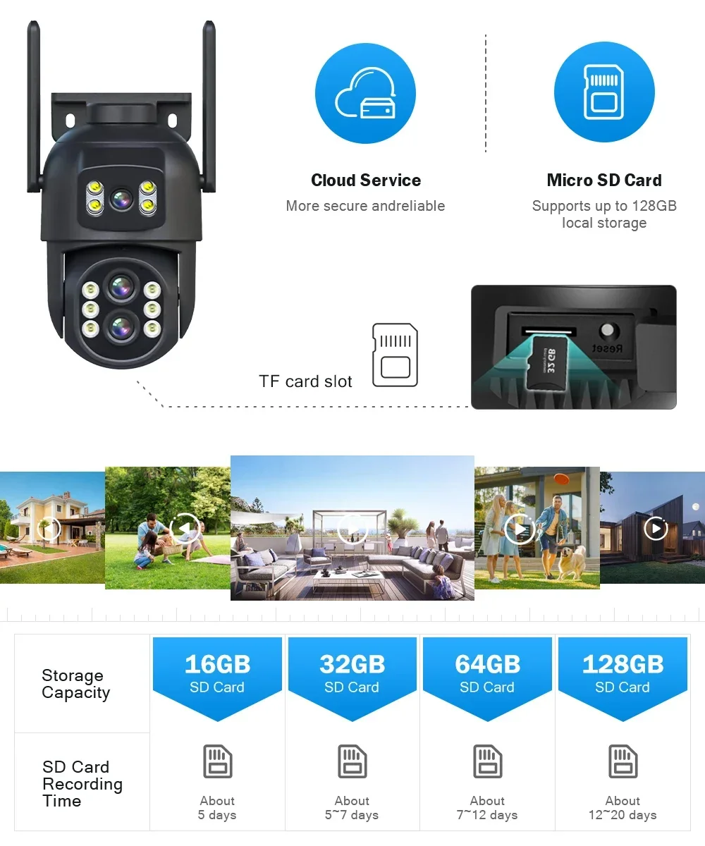 *Built-in SD card slot, thie video surveillance camera support up to 128g Micro SD card (SD card not includeed)