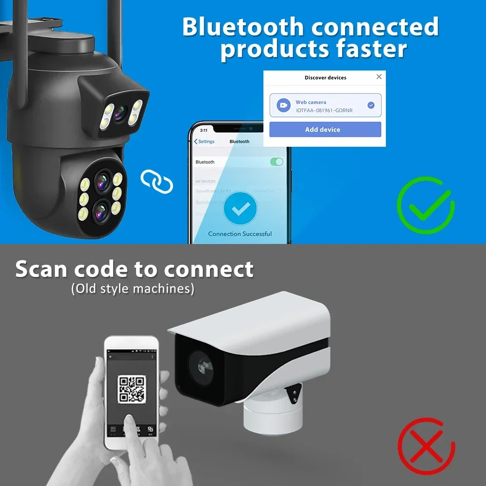 Previously, the camera needs to scan the code to connect, now no longer troublesome, directly open the phone Bluetooth, APP automatically pop-up "camera ID", directly click to connect, and Bluetooth headset as convenient!
