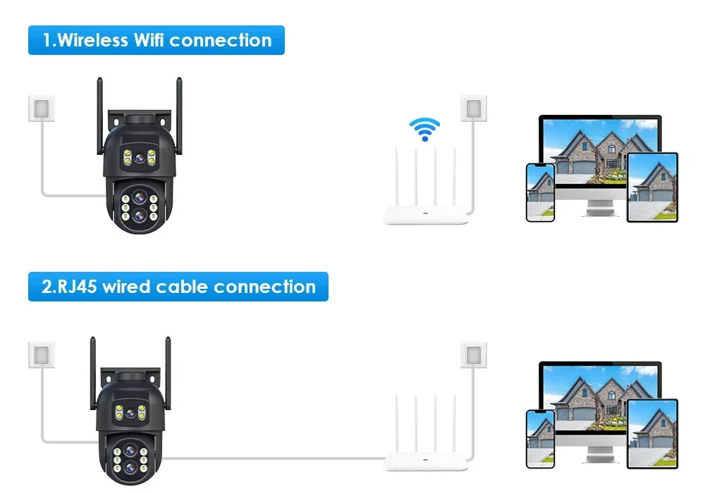 The camera supports both WiFi connection and network port connection to help you solve network problems