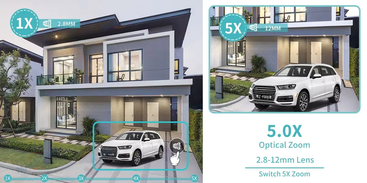 This camera has built-in 2.7mm and 13.5mm lenses, and you can easily switch between 1.0x to 5.0x optical zoom in the App.