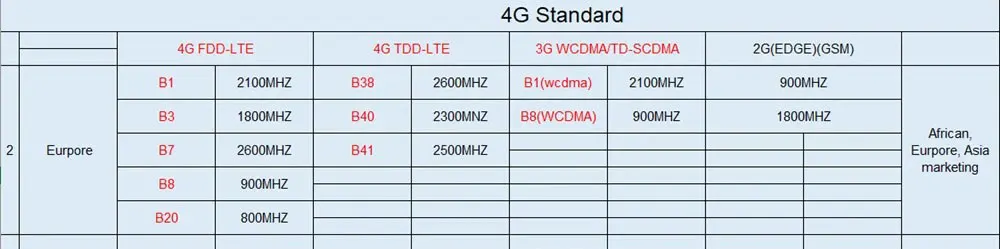 Our 4G version camera LTE frequency band: B1/B3/B7/B8/B20/B28.