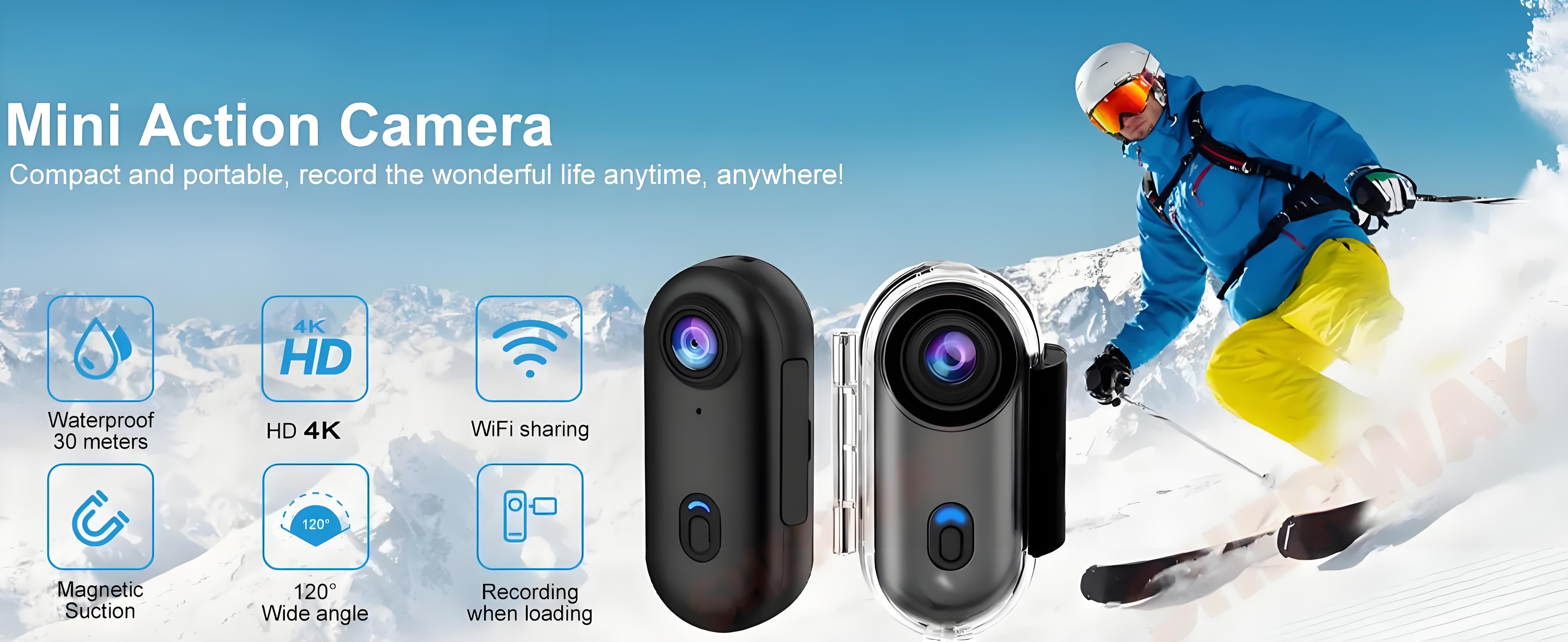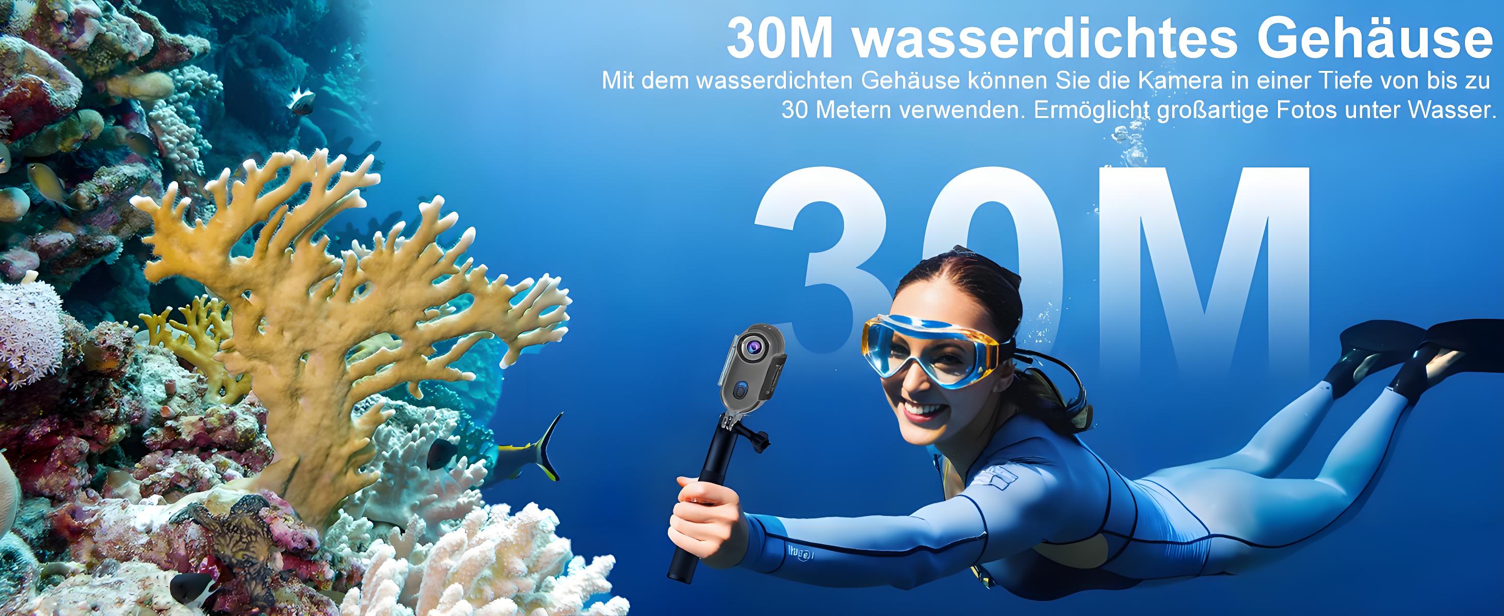 Waterproof to 131 feet: This mini camera is equipped with a waterproof housing and can be carried to a depth of 131 feet (40 meters) underwater, which is perfect for diving, snorkeling and surfing. It should be noted that without the waterproof housing, the camera itself is not waterproof.