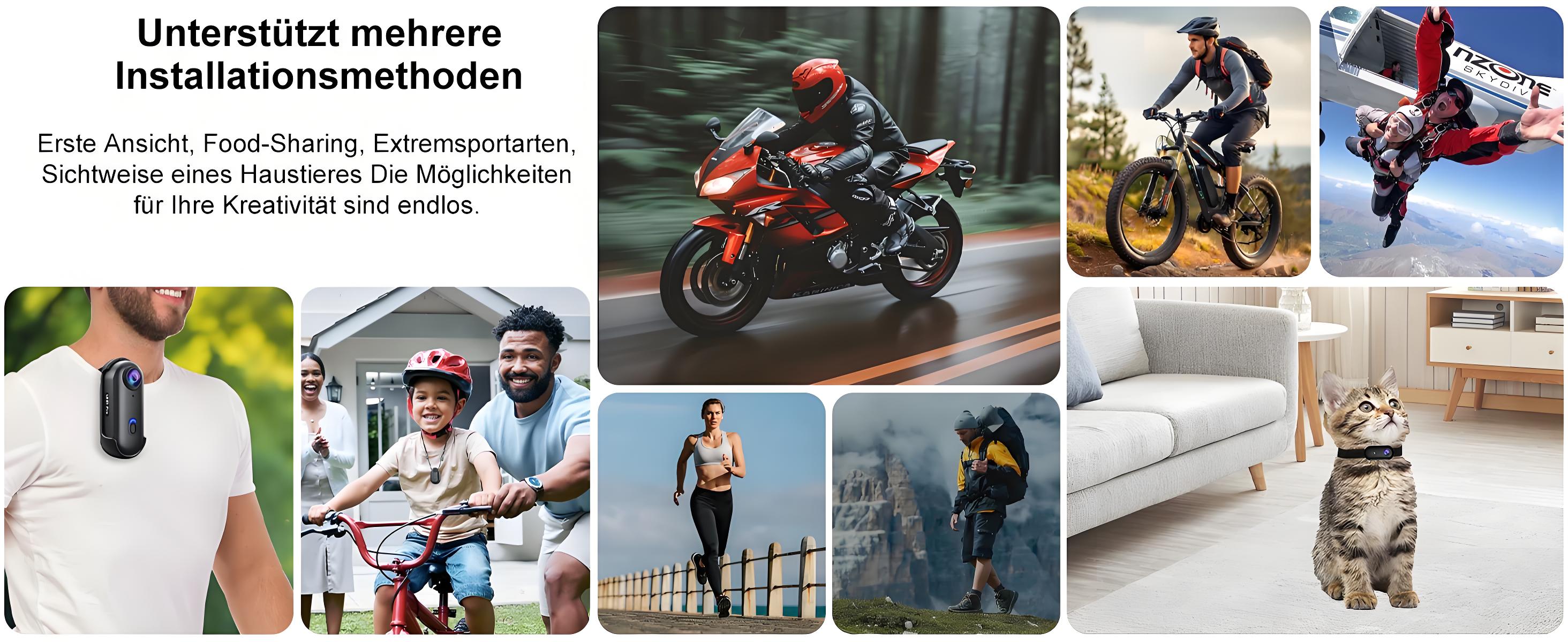 Mount anywhere: The H88 action camera is designed with magnetic suction and can be attached to ferrous metal surfaces. It also comes with a magnetic lanyard pad, allowing you to quickly hang it on your chest in just one second. The 360° rotating spring clip can easily fix the camera to your collar, pocket, waist and other places. In addition, it also includes seven other mounting accessories, which can be easily installed on bicycles, motorcycles, helmets and other equipment.