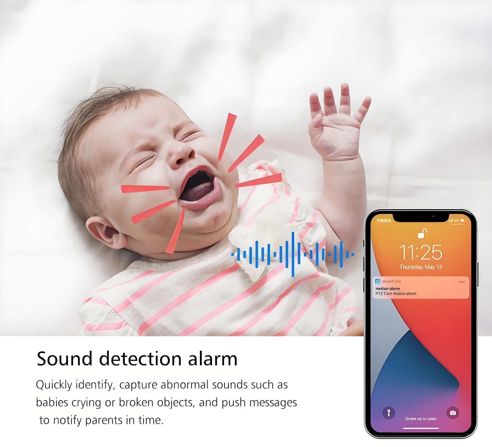 When the camera detects sound, you will receive alert notification that APP push. You can put this camera in your baby's room, when your baby is crying, you can get there in time to see what happened.