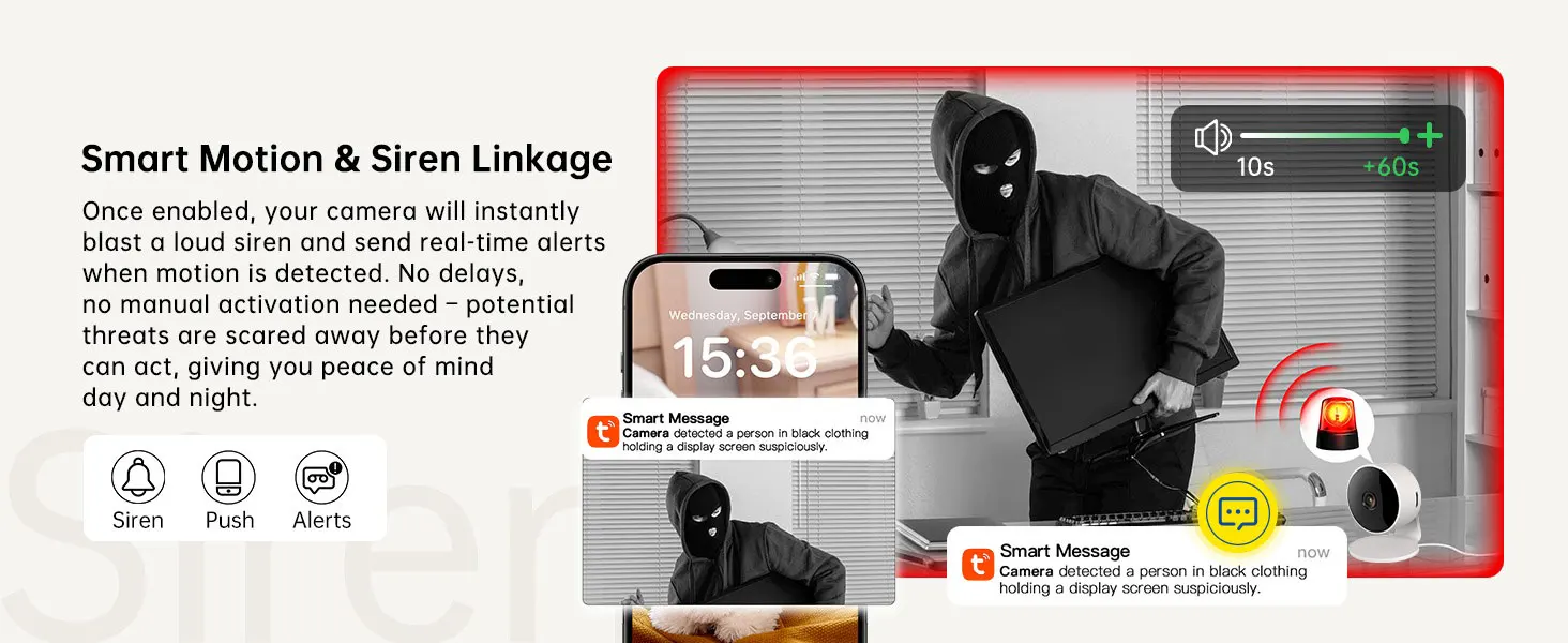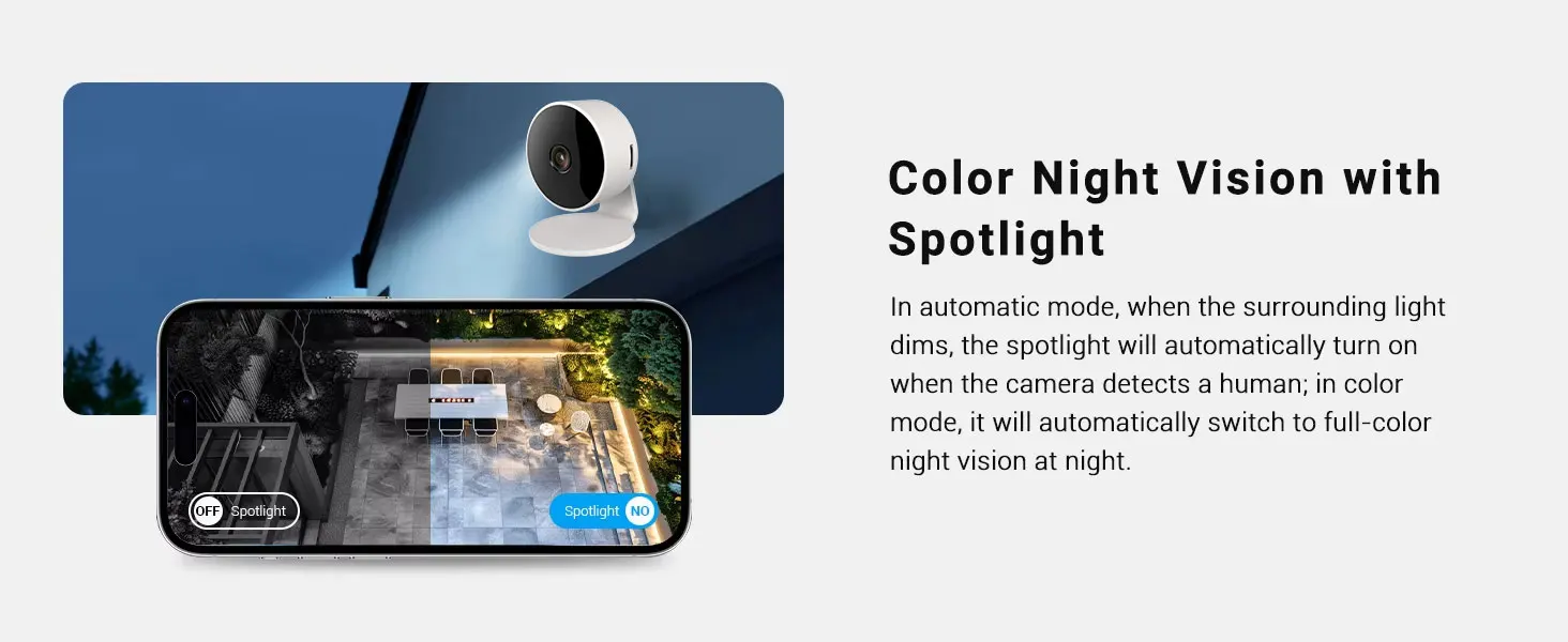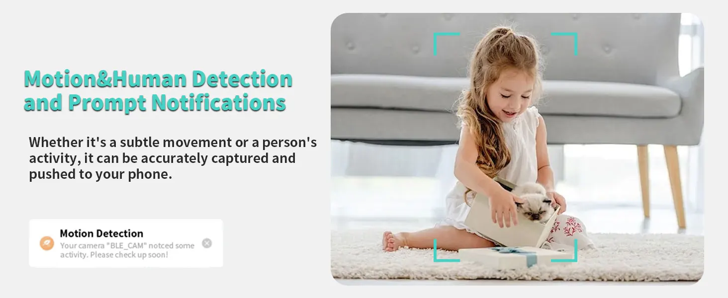 Quickly finds human targets and immediately sends a notification to your phone, letting you see what happens anywhere. It only detects the human shape and will not trigger falsely for objects such as cars and trees.