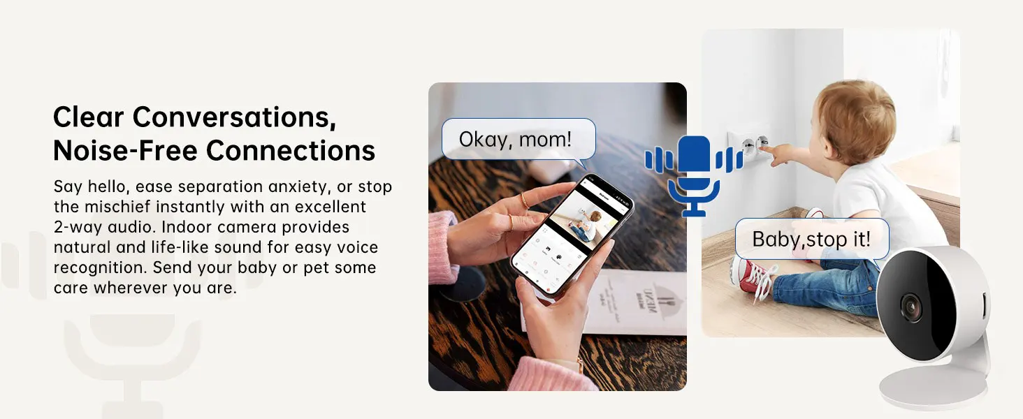 Camera is built with microphone and speaker. So you can talk to your kids via your Smartphone remotely whenever you want