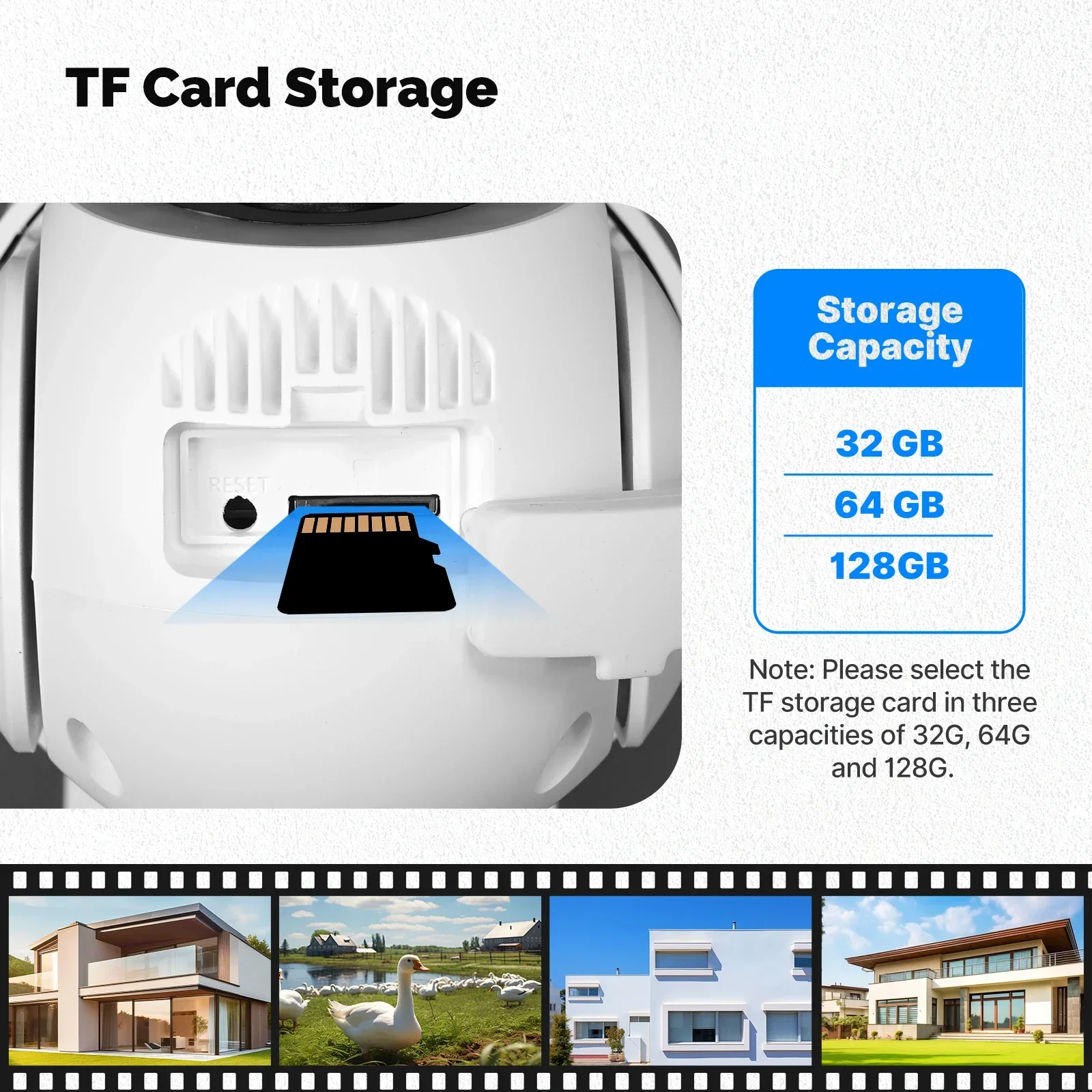 Note: Please select the TF storage card in three capacities of 32G, 64G and 128G.