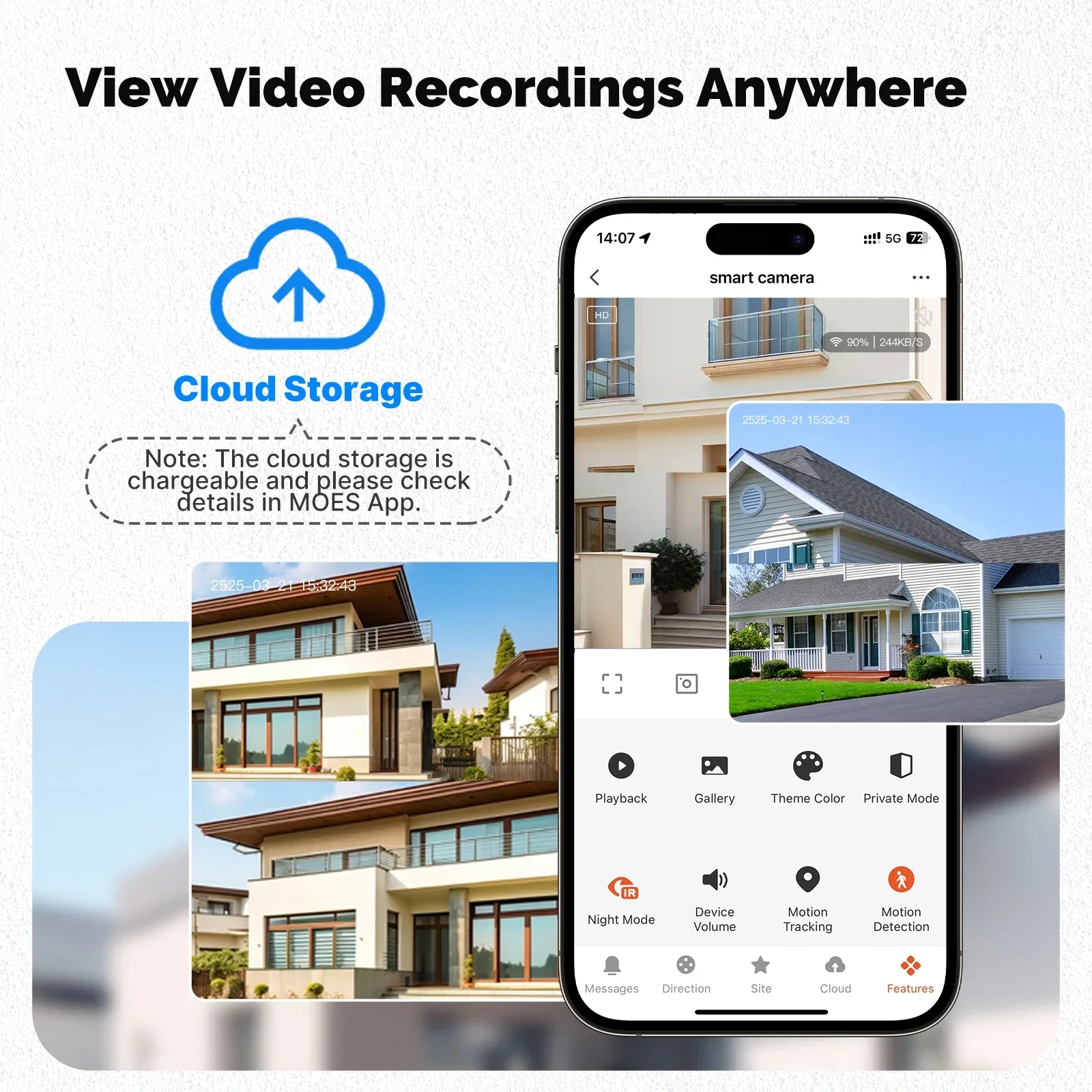 The cloud storage is chargeable and please check details in Tuya App.
