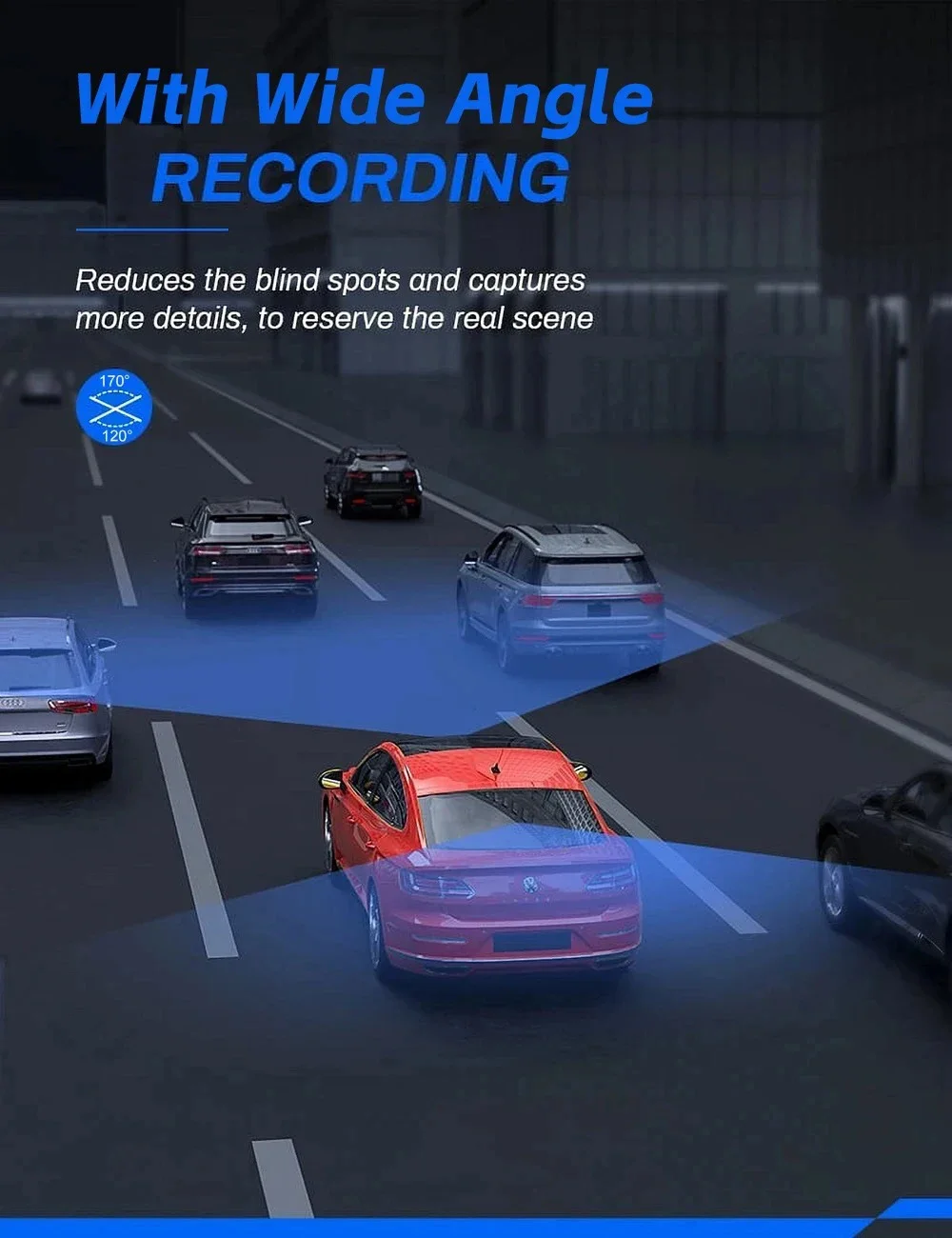 Built-in G-sensor activates automatic recording when a sudden shake or collision is detected. When emergency video is recorded, a voice will alert you when you return to the car. In addition,supports time-lapse recording, which maximizes storage usage and ensures that no moments of evidence are missed.
