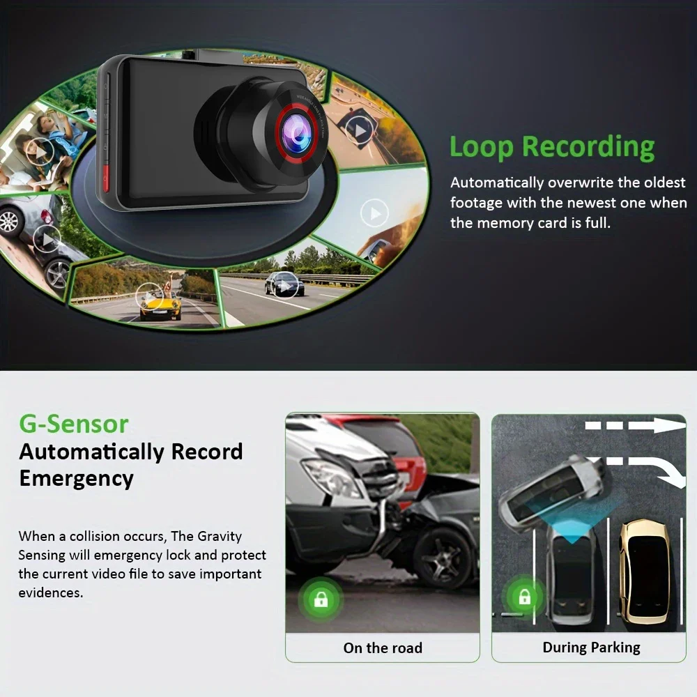 When your car is subjected to an impact or other emergency,the G sensor is triggered, so that the recorder immediately records and locks the video.
