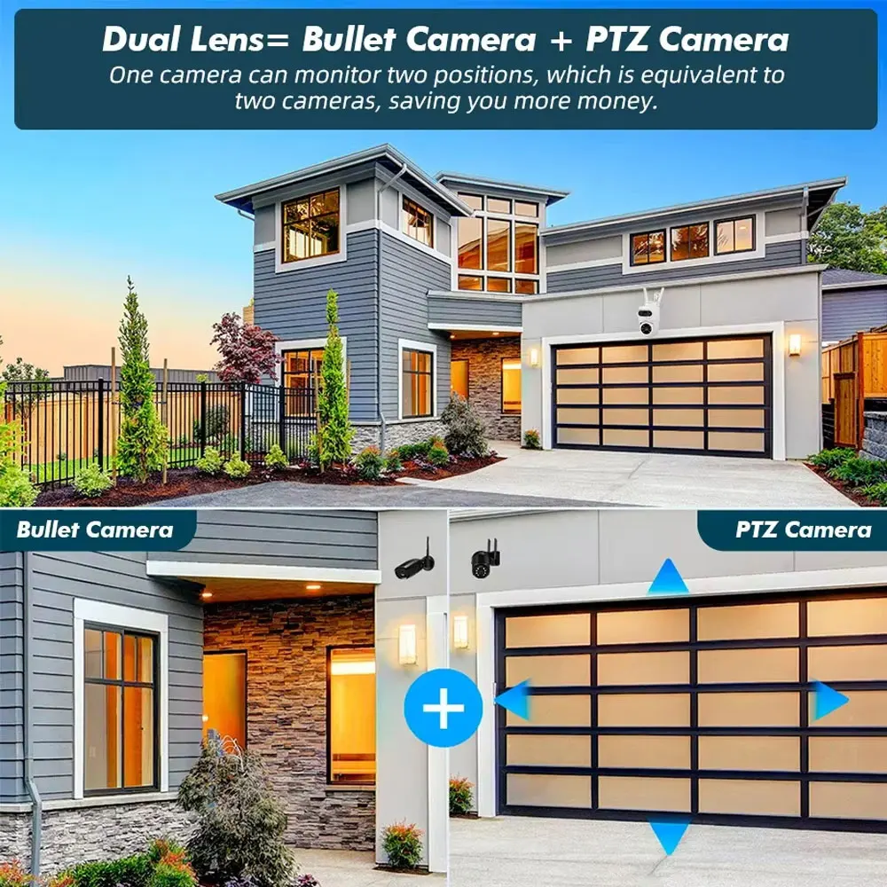 - Dual-lens dual-sensor dual-screen, wide-angle Viewing + Long Distance Viewing to achieve clear monitoring from far and near;